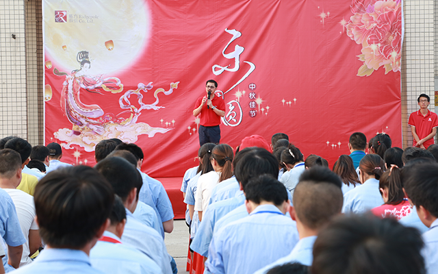 入場儀式結(jié)束后,棟方股份掌舵人唐董登臺致辭,向全體員工表達(dá)了最真摯的感謝和最誠摯的中秋祝福。