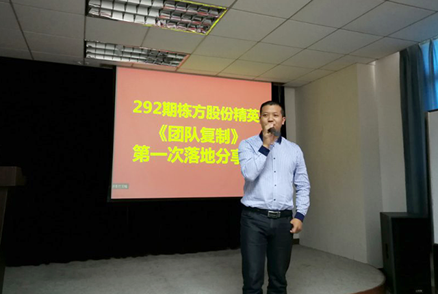 2017年11月23日,棟方股份精英《團(tuán)隊(duì)復(fù)制》第一次落地分享會(huì)在公司員工培訓(xùn)室舉行,與會(huì)人員除公司邱副總經(jīng)理、黃副總經(jīng)理、人事行政中心胡總監(jiān)及各精英團(tuán)隊(duì)負(fù)責(zé)人之外,還有幸邀請(qǐng)到聚成金牌講師李經(jīng)理一行蒞臨指導(dǎo)。