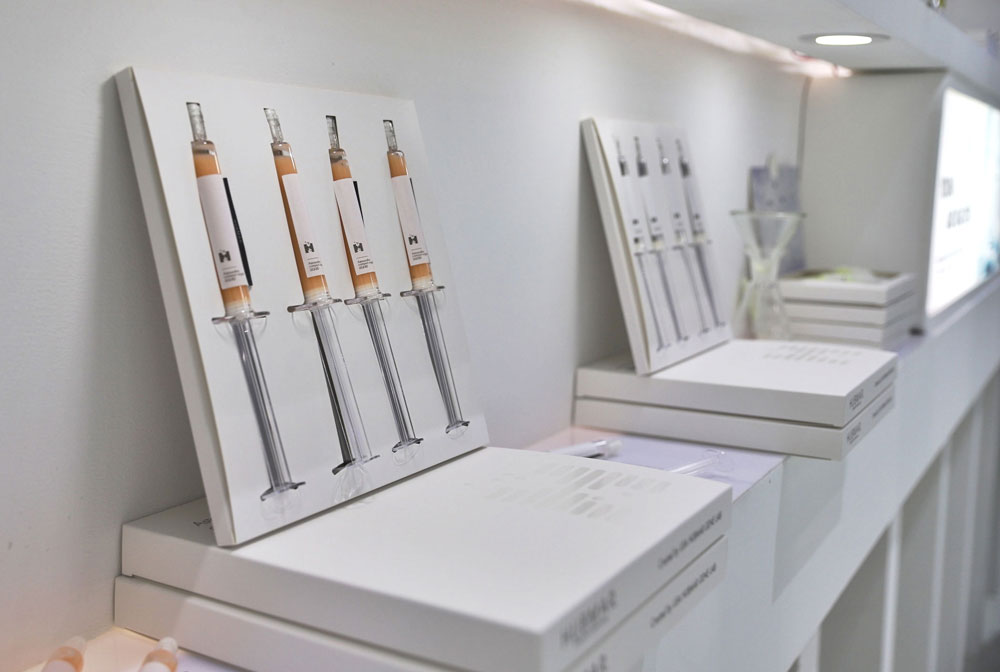 在經(jīng)歷了近兩年的醞釀鋪墊后,“精準(zhǔn)醫(yī)美”、“凍干粉”、“安瓶”等元素也成功從書面熱詞跳出,活躍在棟方星品矩陣。在此基礎(chǔ)上,棟方股份積極整合行業(yè)前沿生物技術(shù)資源,開發(fā)出一系列成分健康、安全高效的高端定制醫(yī)美項目,引得大批觀展者前來洽談。